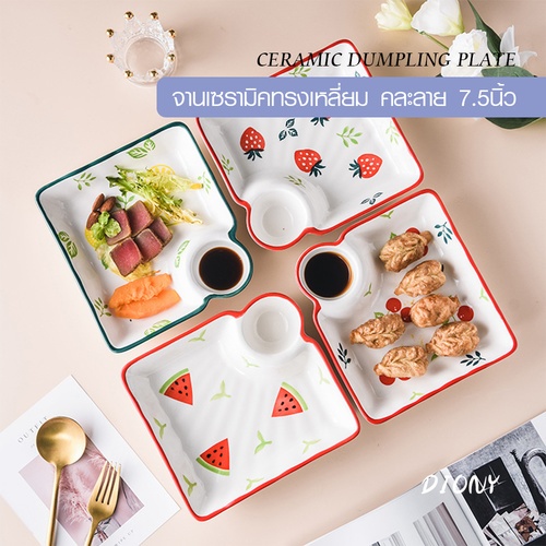 ADAMAS จานเซรามิคทรงเหลี่ยม คละลาย 7.5นิ้ว DIONY