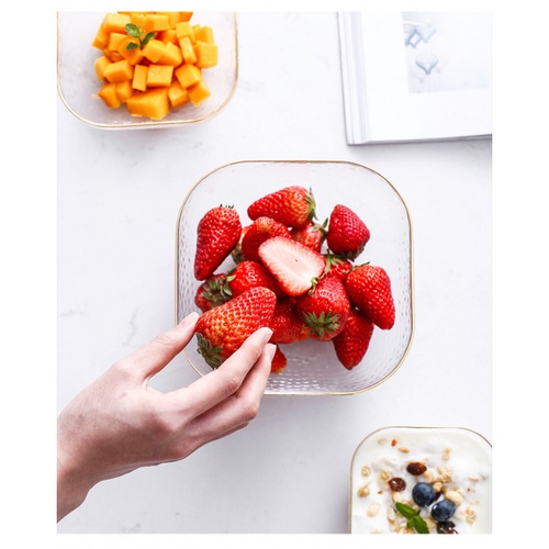 สัมผัสประสบการณ์การทานอาหารที่ล้ำค่า กับถ้วยแก้วทรงเหลี่ยมขอบทอง JORINA-G ขนาด 5 นิ้ว สไตล์นอร์ดิกที่มาพร้อมการออกแบบที่ทันสมัยและสวยงาม เหมาะสำหรับใส่ขนมหวาน ข้าว ผัก หรือผลไม้ ได้อย่างลงตัว เพิ่มบรรยากาศให้ทุกมื้ออาหารของคุณมีเสน่ห์และความสุข เตือน: ห้ามใช้ในเตาอบไมโครเวฟ, เครื่องล้างจาน และตู้ฆ่าเชื้อโรค