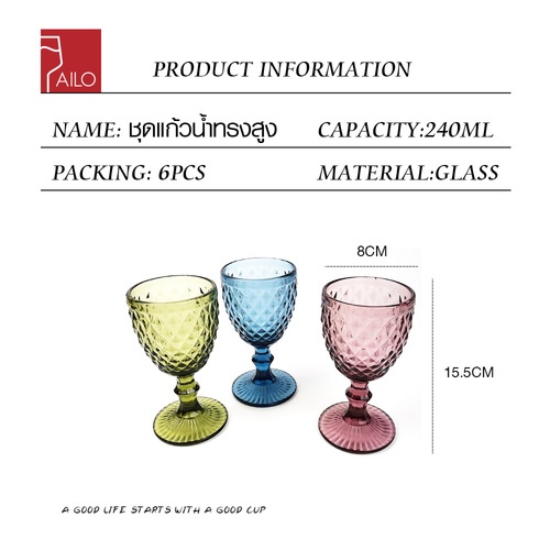 - ชุดแก้วน้ำทรงสูงคละสี 6 ใบ ดูสวยงาม ทันสมัย