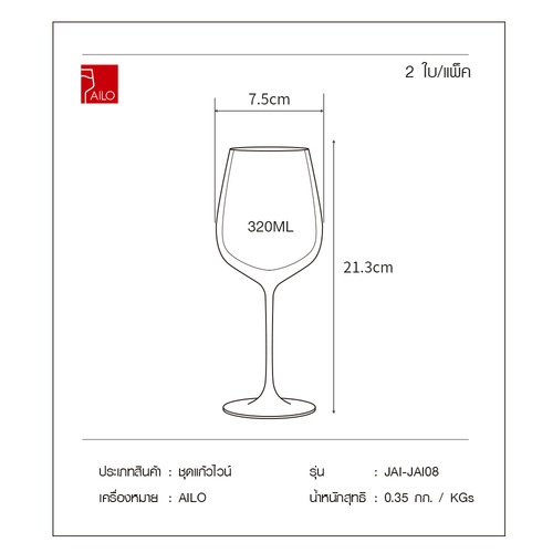 AILO ชุดแก้วไวน์ 320มล. (2ใบ/แพ็ค) JAI-JAI08