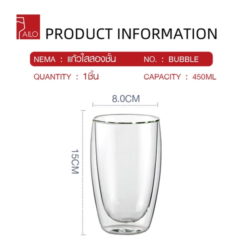 AILO แก้วใสสองชั้น 450มล. BUBBLE