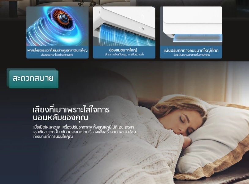 - เสียงเบาเป็นพิเศษ ช่วยให้คุณได้พักผ่อนอย่างเต็มที่