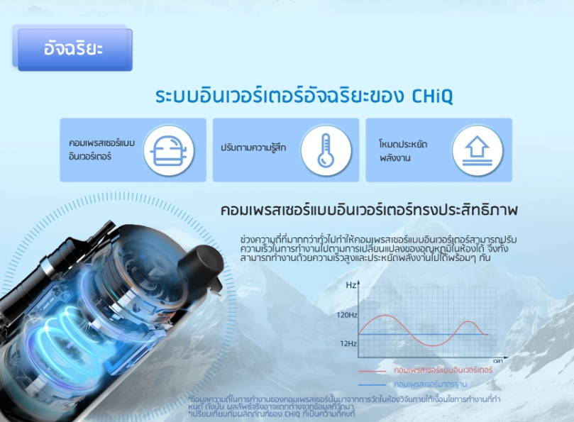 เทคโนโลยีอินเวอร์เตอร์: ช่วยปรับความเร็วของคอมเพรสเซอร์ให้เหมาะสม ลดการใช้พลังงานและเสียงรบกวน
