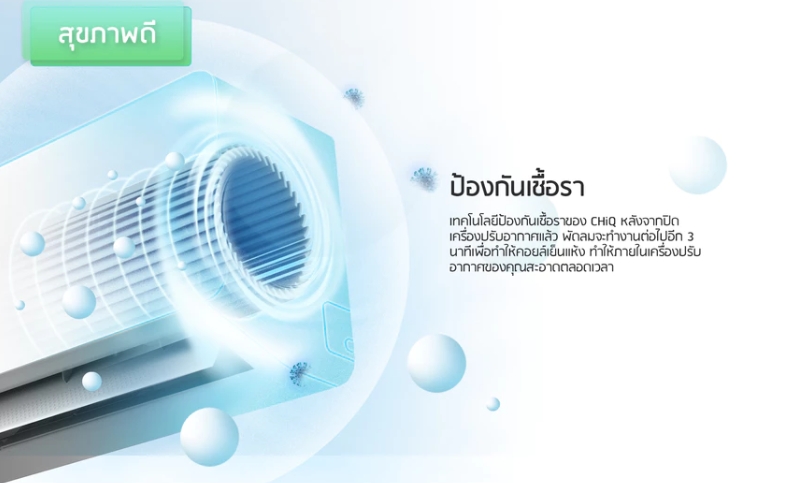 ทำความสะอาดอัตโนมัติ เมื่อปิดเครื่องปรับอากาศ พัดลมจะทำงานต่อไปเป็นเวลา 3 นาที ซึ่งจะทำให้เครื่องไม่เกิดราน้ำค้าง