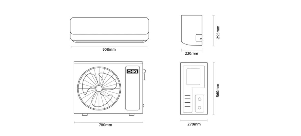 - ขนาดสุทธิของหน่วยในร่ม (กว้าง*สูง*ลึก) (มม.) 908*295*220