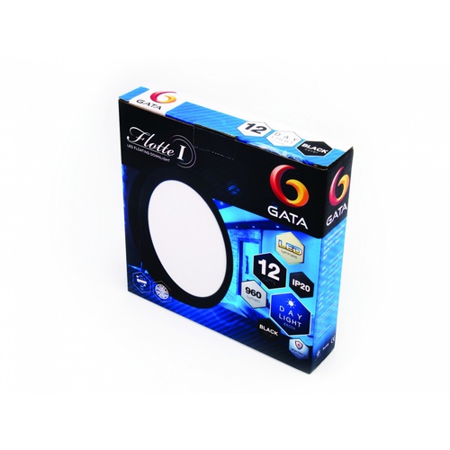 GATA โคมดาวไลท์ LED แบบติดลอยหน้ากลม ขอบสีดำ 6นิ้ว 12W แสงเดย์ไลท์ สีดำ