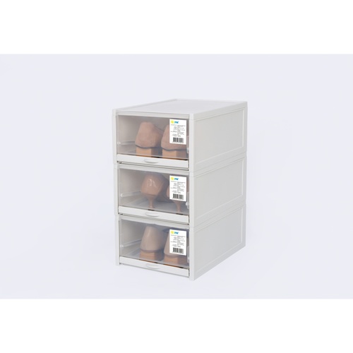 GOME กล่องรองเท้าแบบเลื่อนฝาหน้า DF007-3  บรรจุ 3 กล่อง/ แพ็ค สีเทา