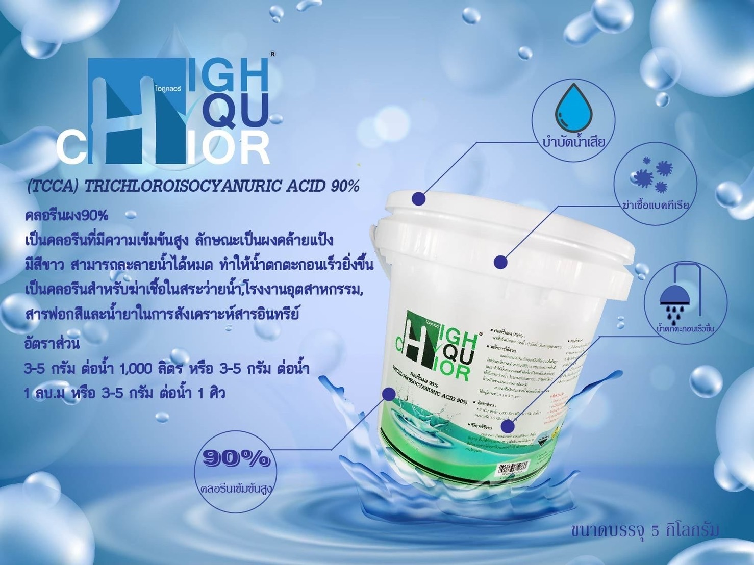 HIGHQUCHLOR คลอรีนผง 90% ฆ่าเชื้อโรค ขนาด 5kg