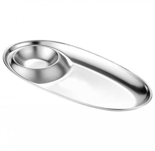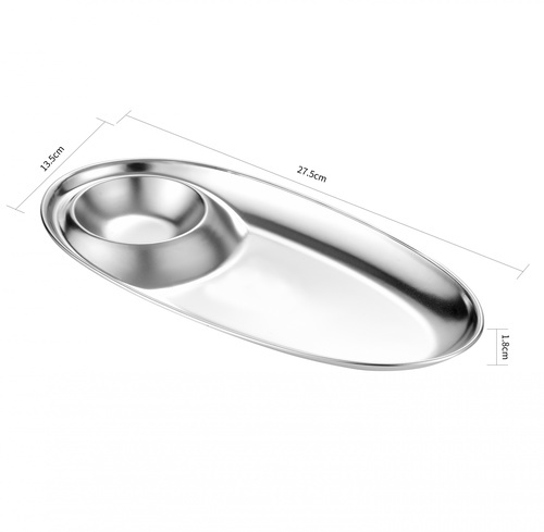 SANE ถาดสเตนเลส304พร้อมช่องใส่ซอสขนาด 27.5x13.5x1.8ซม. TERAS สีโครเมี่ี่ยม
