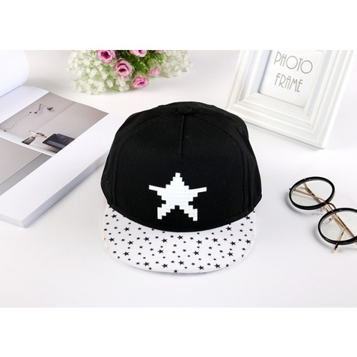 USUPSO หมวกปีกแบนเด็กลายดาว - สีดำ
