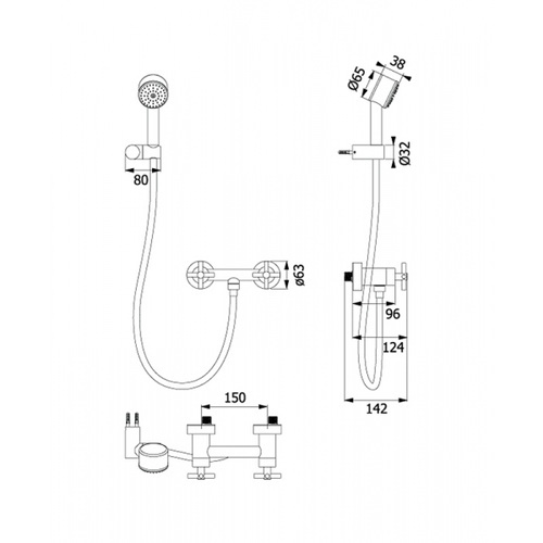 - ก๊อกผสมยืนอาบแบบคู่ผสม พร้อมฝักบัวสายอ่อน