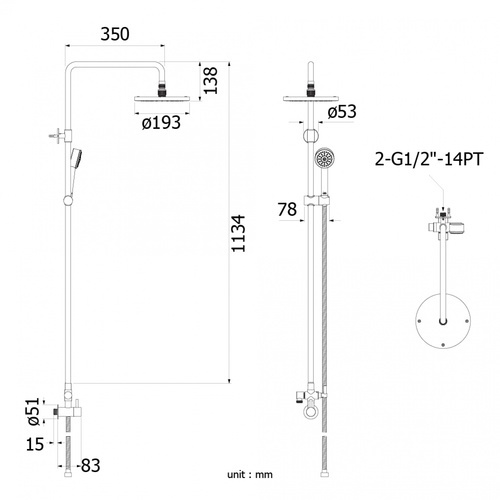 VRH Rain shower ครบชุดหัวกลม รุ่น POCKET+FJVHS-115TCS