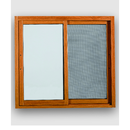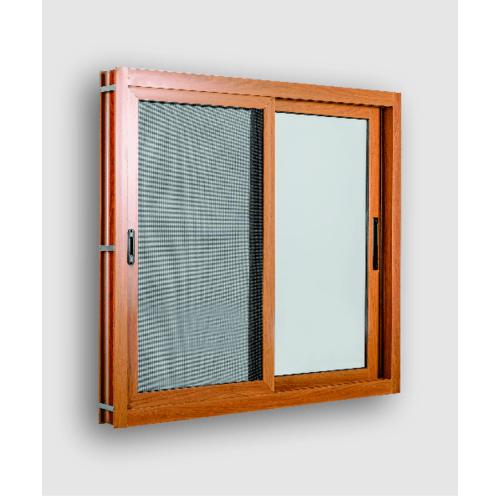WELLINGTAN หน้าต่างอะลูมิเนียม บานเลื่อน SS TK1211SS-2P 120x110ซม. สีไม้สัก พร้อมมุ้งลวดนิรภัย