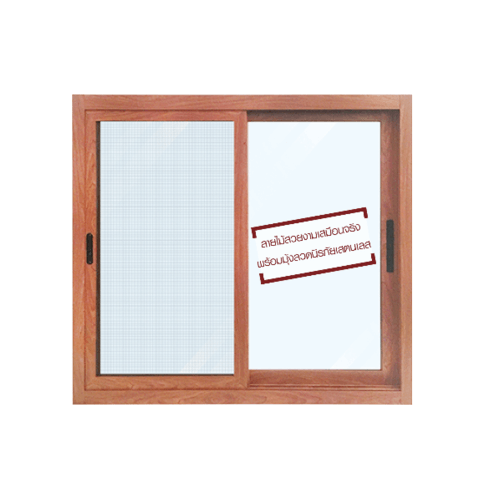 หน้าต่างอะลูมิเนียม บานเลื่อน SS TK1211SS-2P 120cm.x100cm. สีสัก พร้อมมุ้งลวดนิรภัย WELLINGTAN